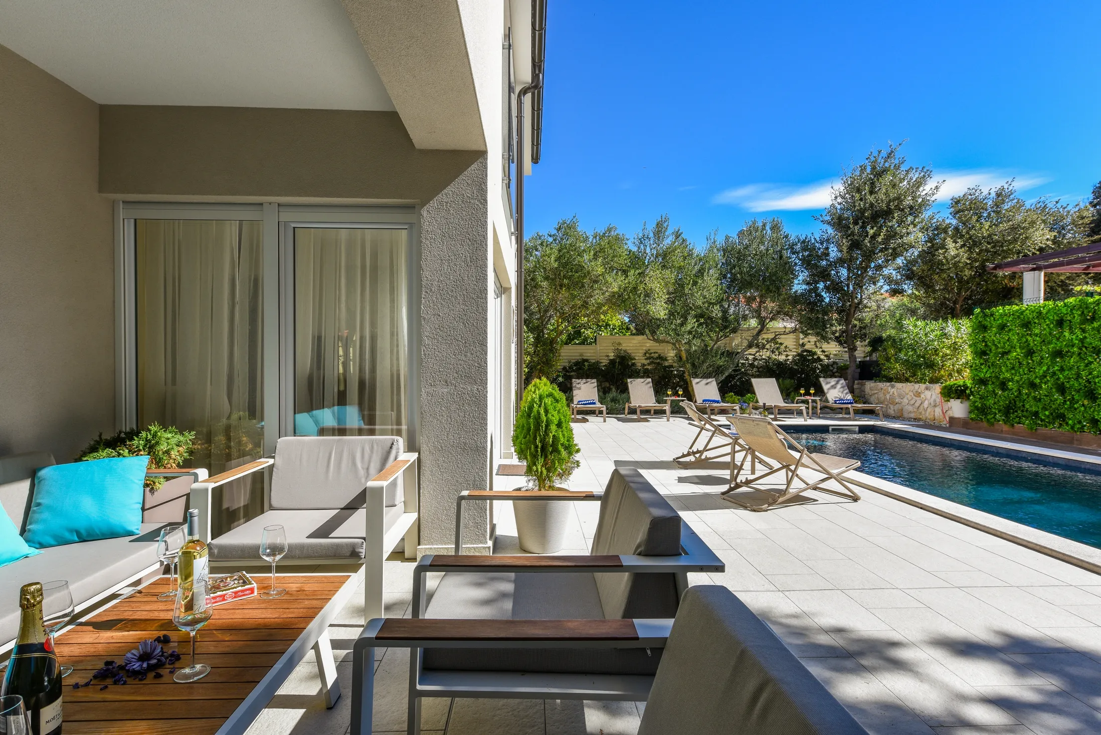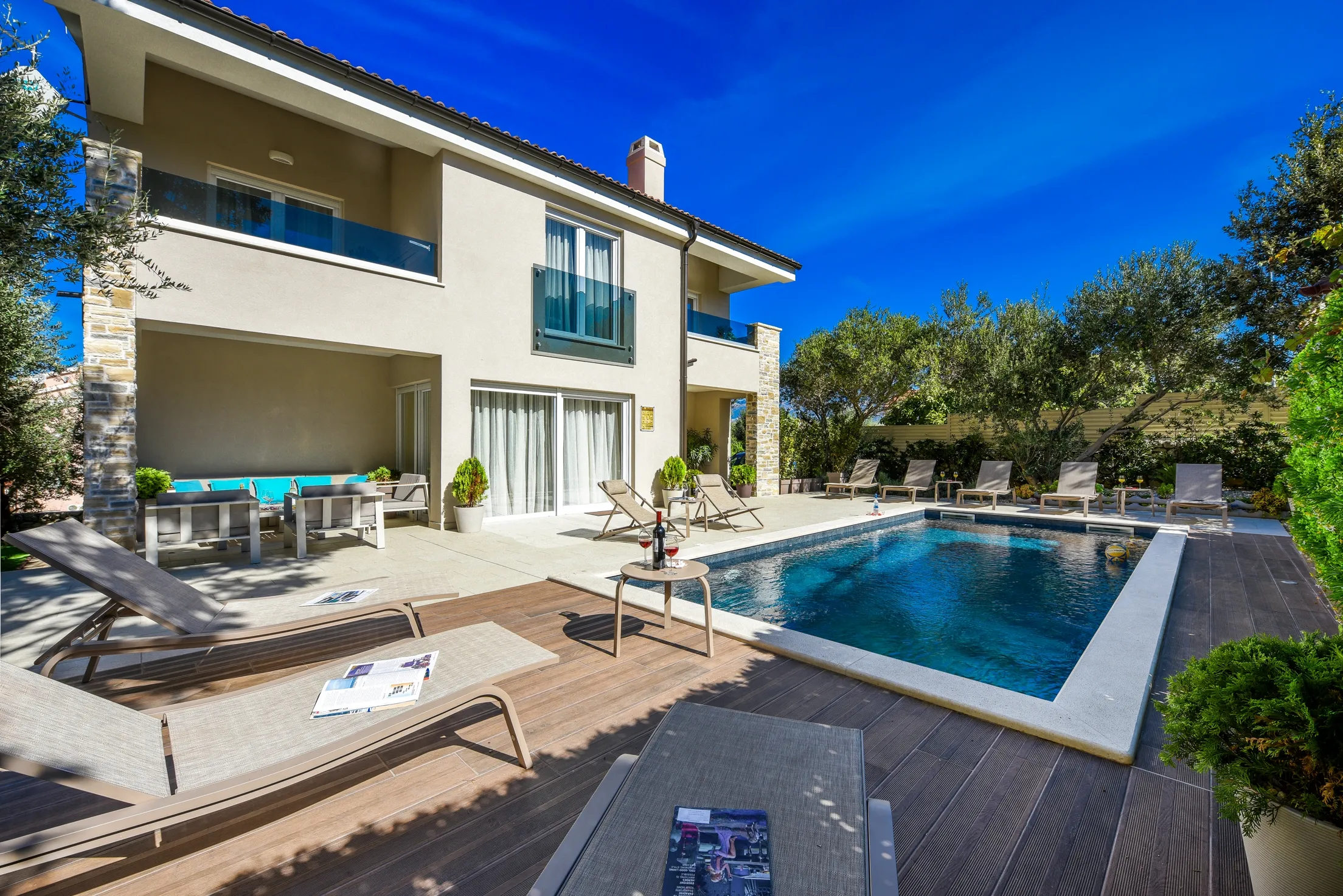 Built on a partially fenced plot of 430m2, villa Goga impresses with its exterior design and an elegant interior. The villa has 5 spacious bedrooms, 4 of which are en-suite bathroom. This makes the villa perfect for 8+2 people. There is also an additional toilet at your disposal.